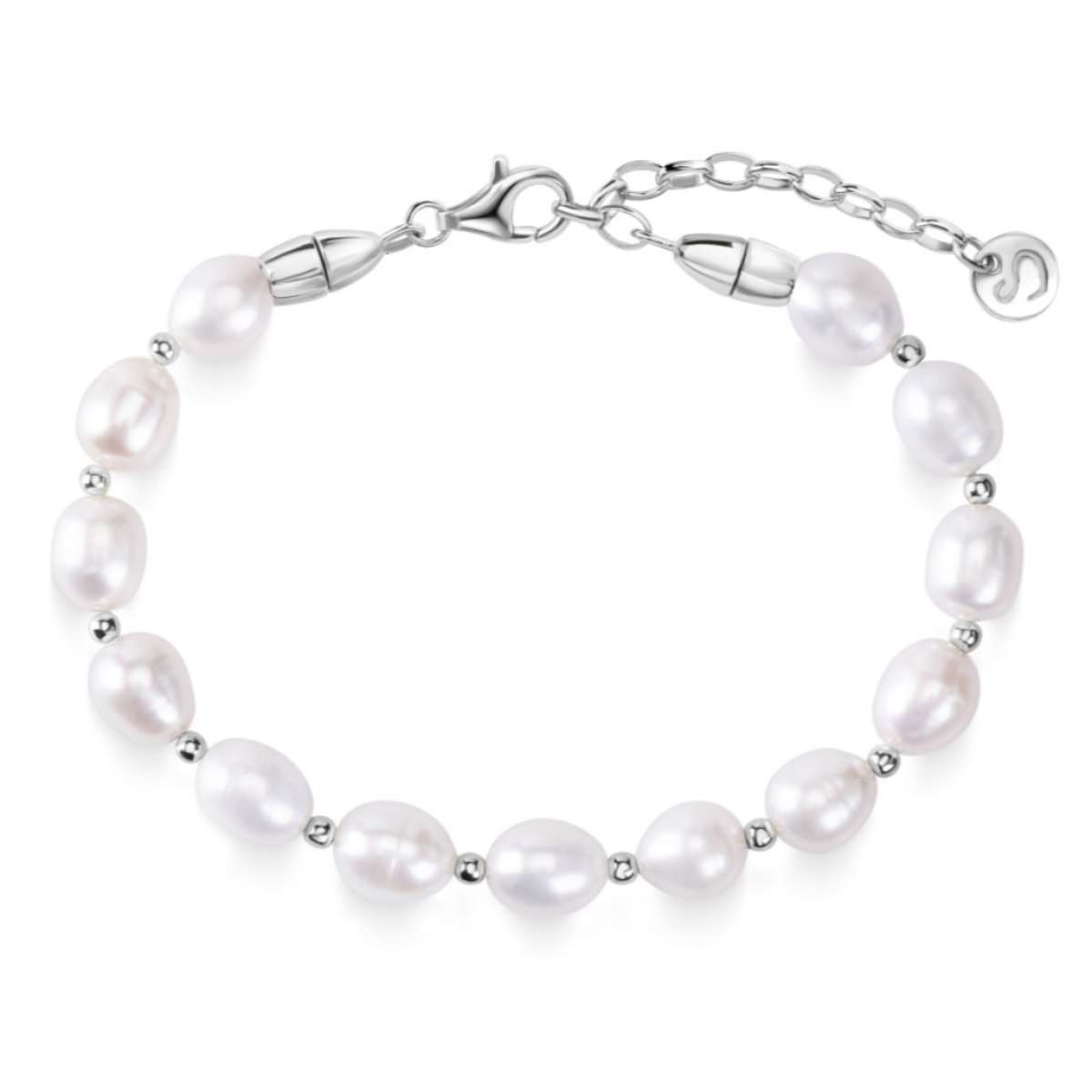 Браслет з намистин перлів з круглими срібними вставками на застібці