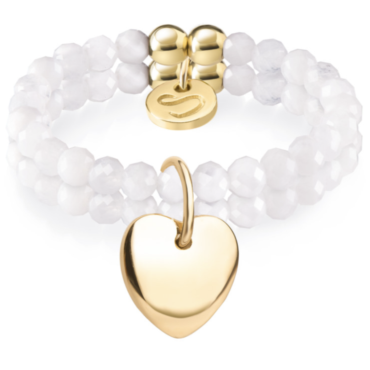 Комплект каблучок з міні намистин місячного каменю з шарміком на петельці «Серце»